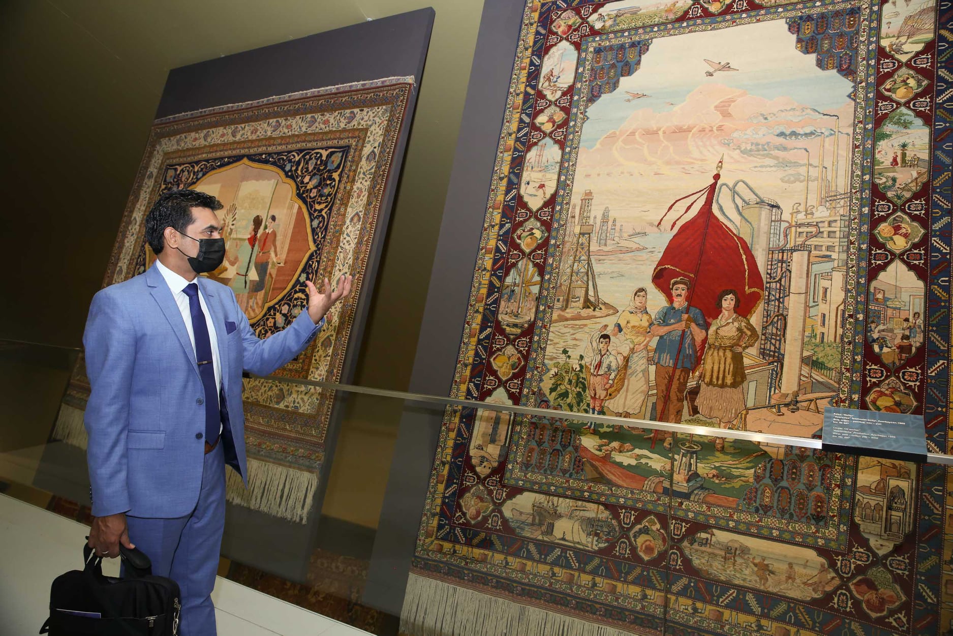 16 sentyabr 2021Ekspozisiya ilə yaxından tanış olan qonaqda Azərbaycan xalça sənəti nümunələri, xüsusilə Qarabağın "Xətai", "Bağçada güllər" xalçaları böyük maraq doğurub.