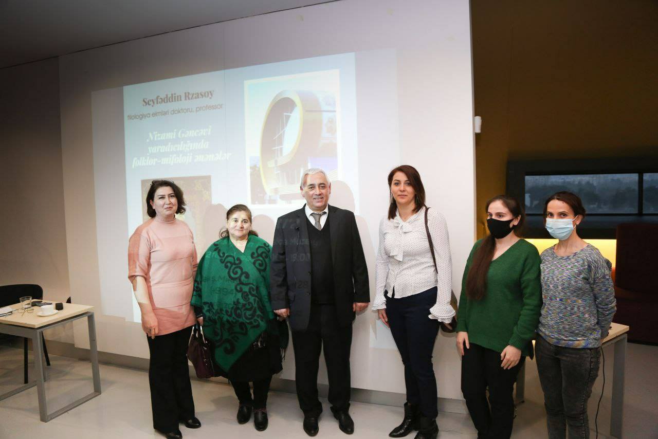 Azərbaycan Milli Xalça Muzeyində filologiya elmləri doktoru, professor Seyfəddin Rzasoyun təqdimatında “Nizami Gəncəvi yaradıcılığında folklor-mifoloji ənənələr” mühazirəsi keçirilib.