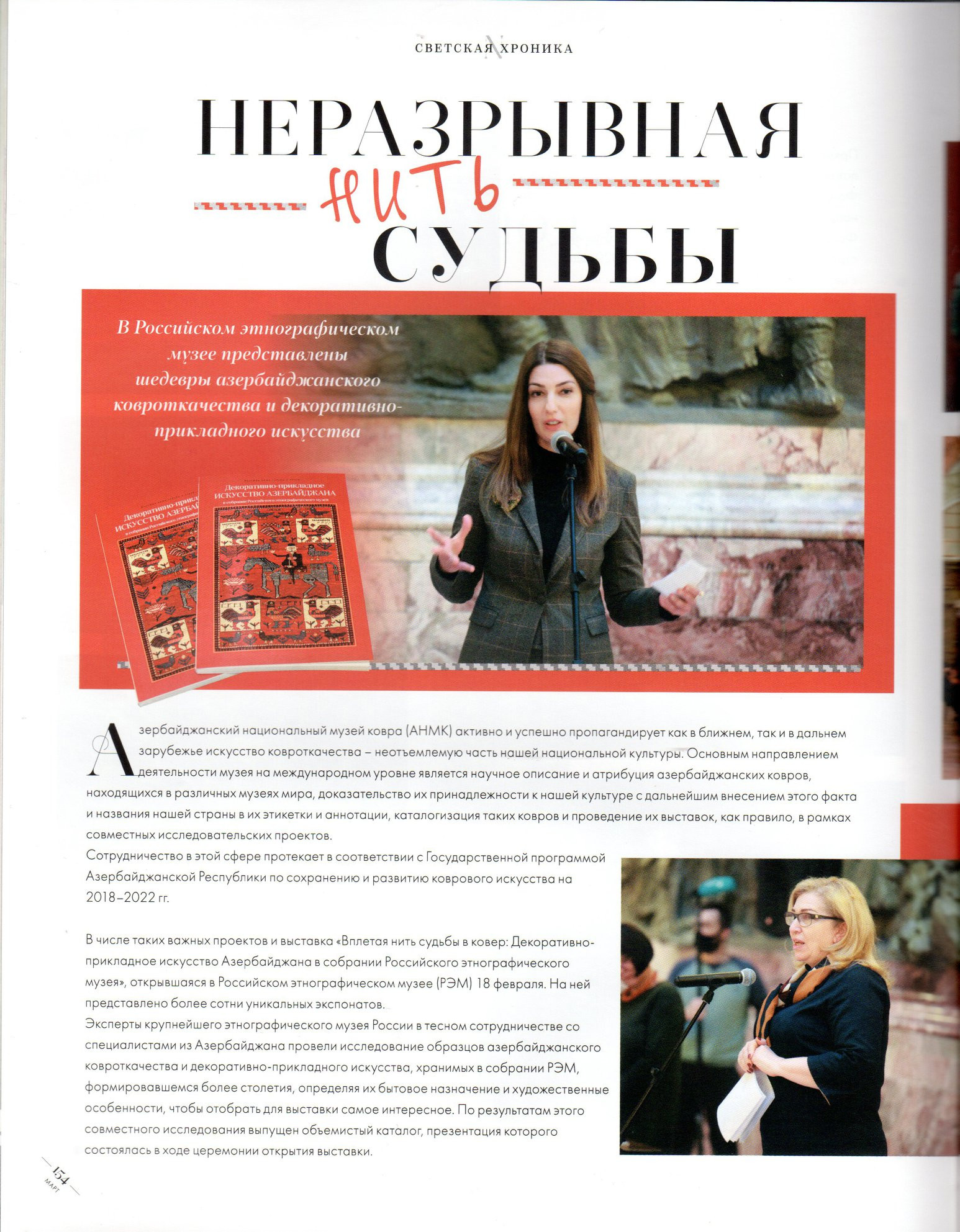 “NARGIS” jurnalının budəfəki buraxılışında (№ 80) Azərbaycan Milli Xalça Muzeyi ilə Rusiya Etnoqrafiya Muzeyinin birgə layihəsi çərçivəsində açılan, yüzdən çox nadir eksponatın təqdim edildiyi “Tale ipini xalçaya toxuyaraq.