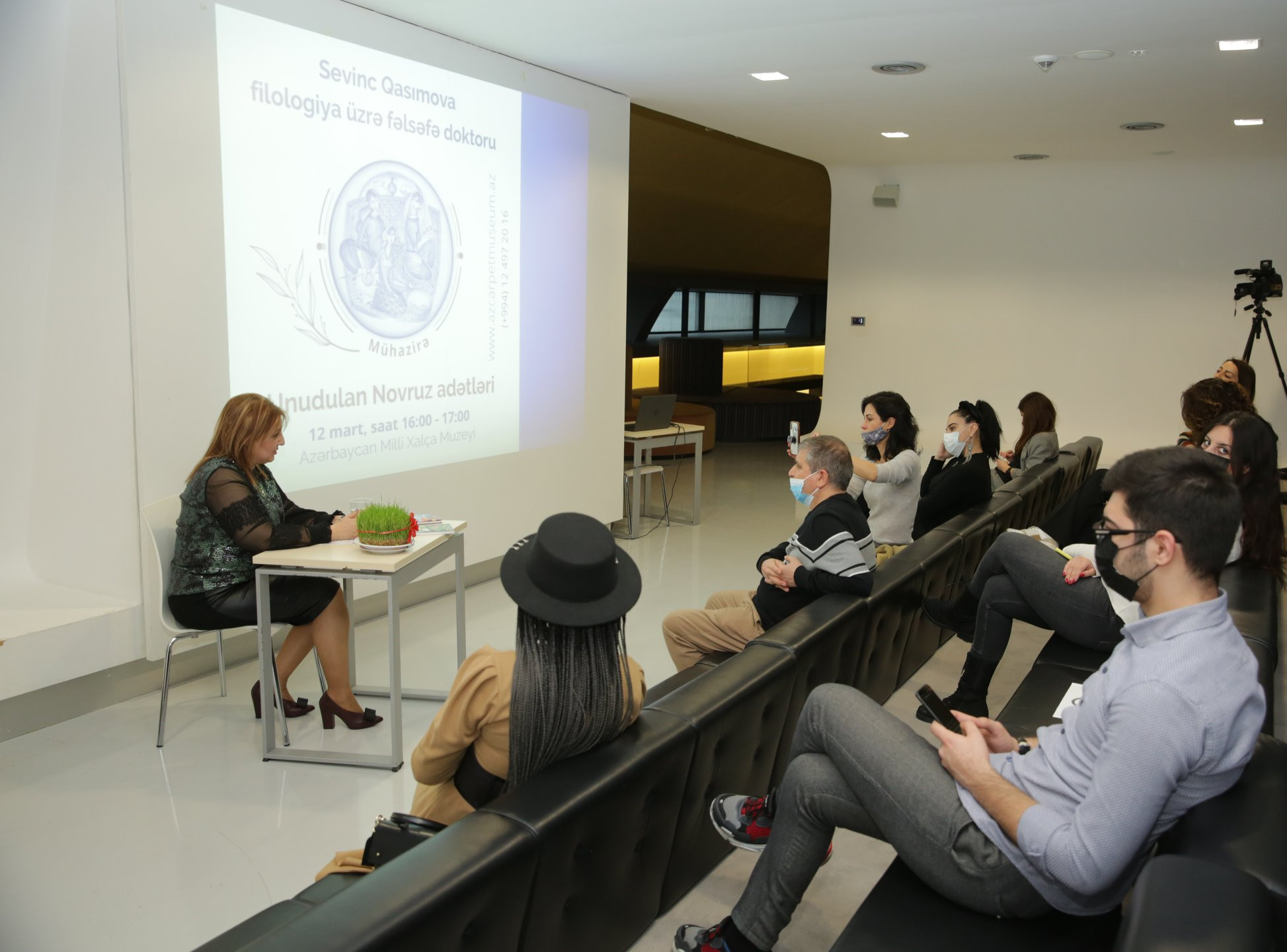 Azərbaycan Milli Xalça Muzeyində filologiya üzrə fəlsəfə doktoru Sevinc Qasımovanın təqdimatında “Unudulan Novruz adətləri” mövzusunda mühazirə keçirilib. Sevinc xanım tədbirdə milli mədəniyyətimizin ən qədim və zəngin hadisəsi olan Novruz bayramının tarixi, onunla bağlı mərasim ənənələri, inanclar barədə ətraflı məlumat verib. O, tarixən mövcud olan və tədricən unudulan Novruz adətlərindən danışıb, tədbir iştirakçılarını maraqlandıran sualları cavablandırıb. S.Qasımova həmçinin müəllifi olduğu 2 kitabı muzeyimizin kitabxanasına hədiyyə edib.