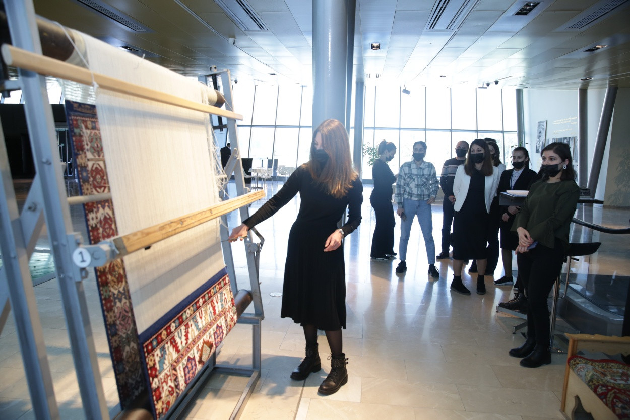 Bu gün Azərbaycan Milli Xalça Muzeyinin ekspozisiyasında nümayiş etdirilən, XIX əsrin sonuna aid Quba qrupunun “Hacıqayıb” xalçası əsasında toxunan yeni xalçanın kəsimi mərasimi keçirilib. Qeyd edək ki, italiyalı kolleksiyaçı Mirko Kattainin 2018-ci ildə muzeyimizə hədiyyə etdiyi “Hacıqayıb” xalçasının replikası Muzeyin Ənənəvi texnologiya şöbəsində toxunub və sıxlığı, ölçüləri, materialı (əriş, arğac, xov-yun), rəng seçimi baxımından həmin sənət nümunəsi ilə eyni parametrlərdədir.