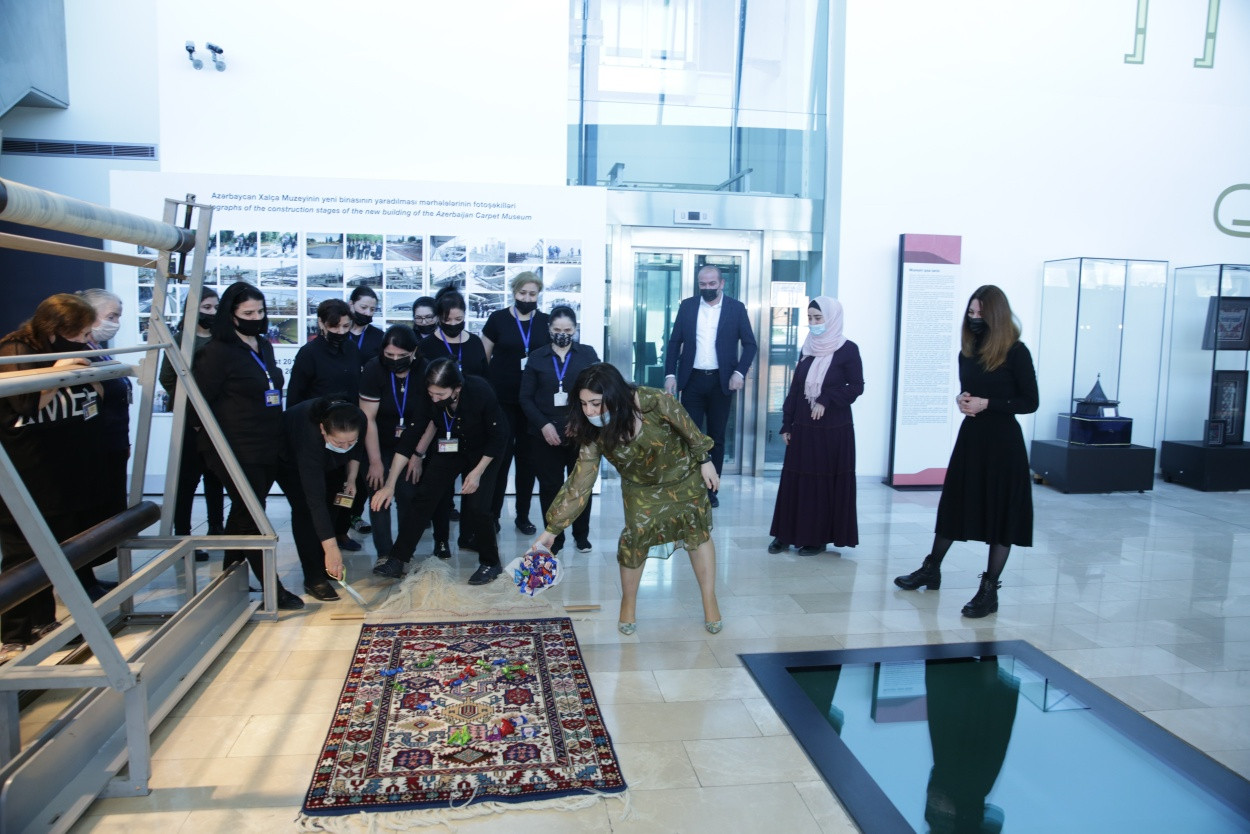 Azərbaycan Milli Xalça Muzeyinin ekspozisiyasında nümayiş etdirilən, XIX əsrin sonuna aid Quba qrupunun “Hacıqayıb” xalçası əsasında toxunan yeni xalçanın kəsimi mərasimi keçirilib.