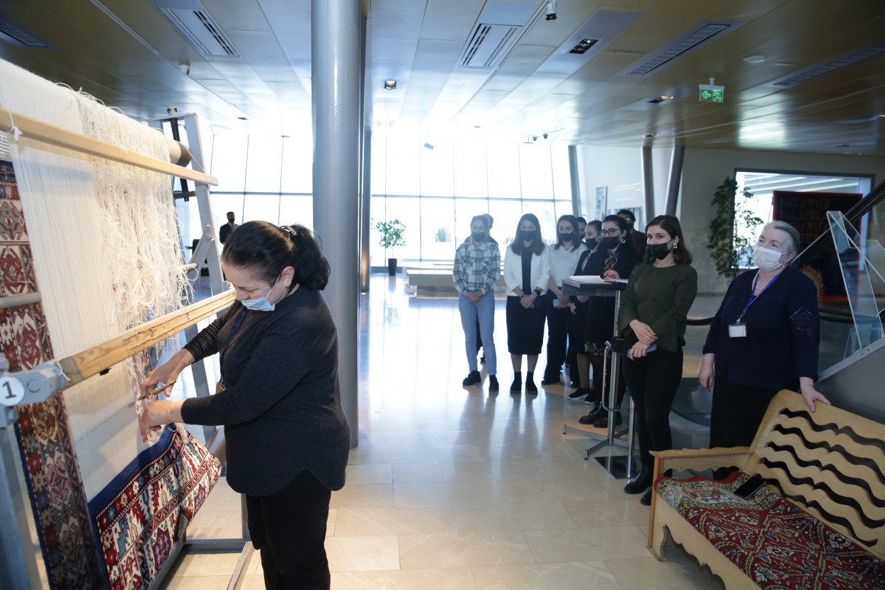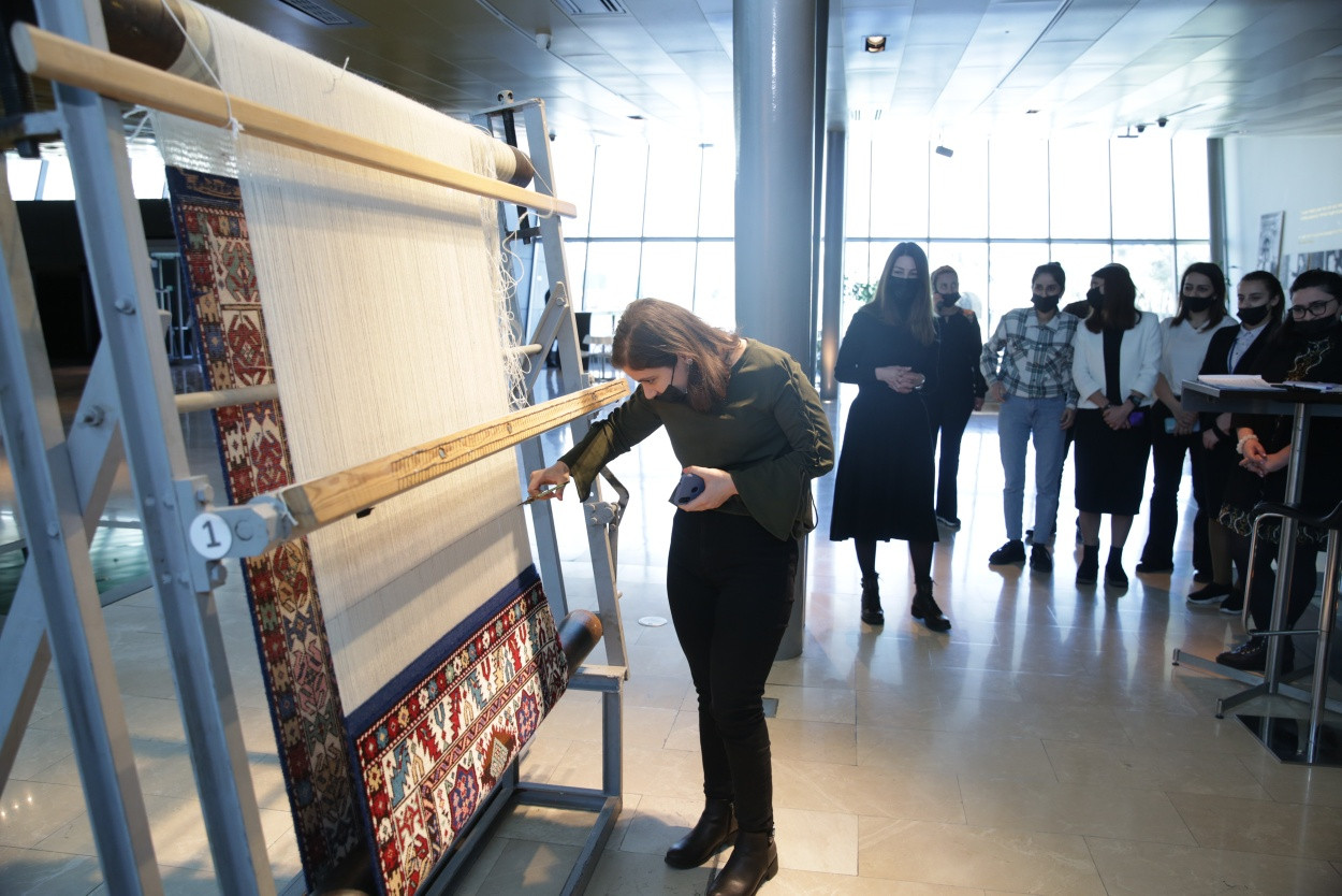 Bu gün Azərbaycan Milli Xalça Muzeyinin ekspozisiyasında nümayiş etdirilən, XIX əsrin sonuna aid Quba qrupunun “Hacıqayıb” xalçası əsasında toxunan yeni xalçanın kəsimi mərasimi keçirilib. Qeyd edək ki, italiyalı kolleksiyaçı Mirko Kattainin 2018-ci ildə muzeyimizə hədiyyə etdiyi “Hacıqayıb” xalçasının replikası Muzeyin Ənənəvi texnologiya şöbəsində toxunub və sıxlığı, ölçüləri, materialı (əriş, arğac, xov-yun), rəng seçimi baxımından həmin sənət nümunəsi ilə eyni parametrlərdədir.